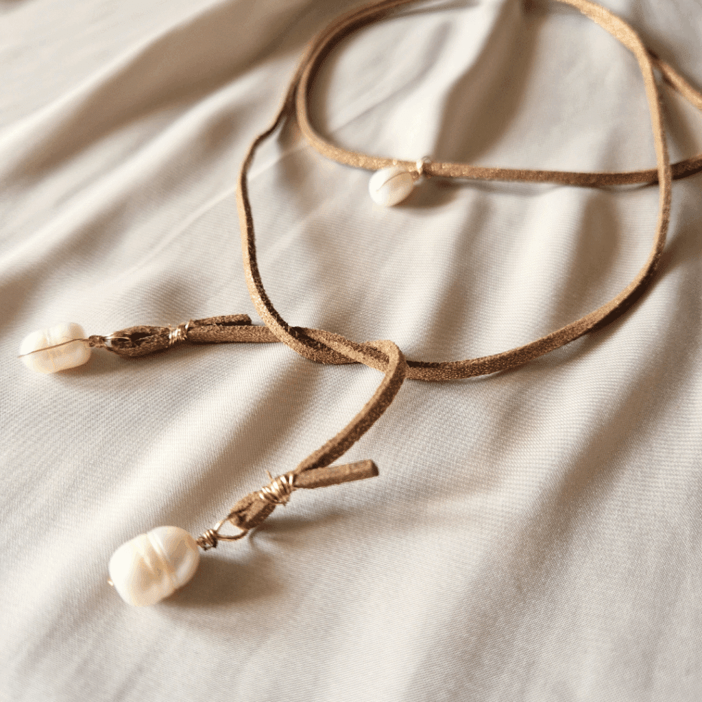 Nous travaillons avec du fil gold filled de haute qualité, du laiton plaqué or (1 et 3 microns), ainsi que des perles et des coquillages.