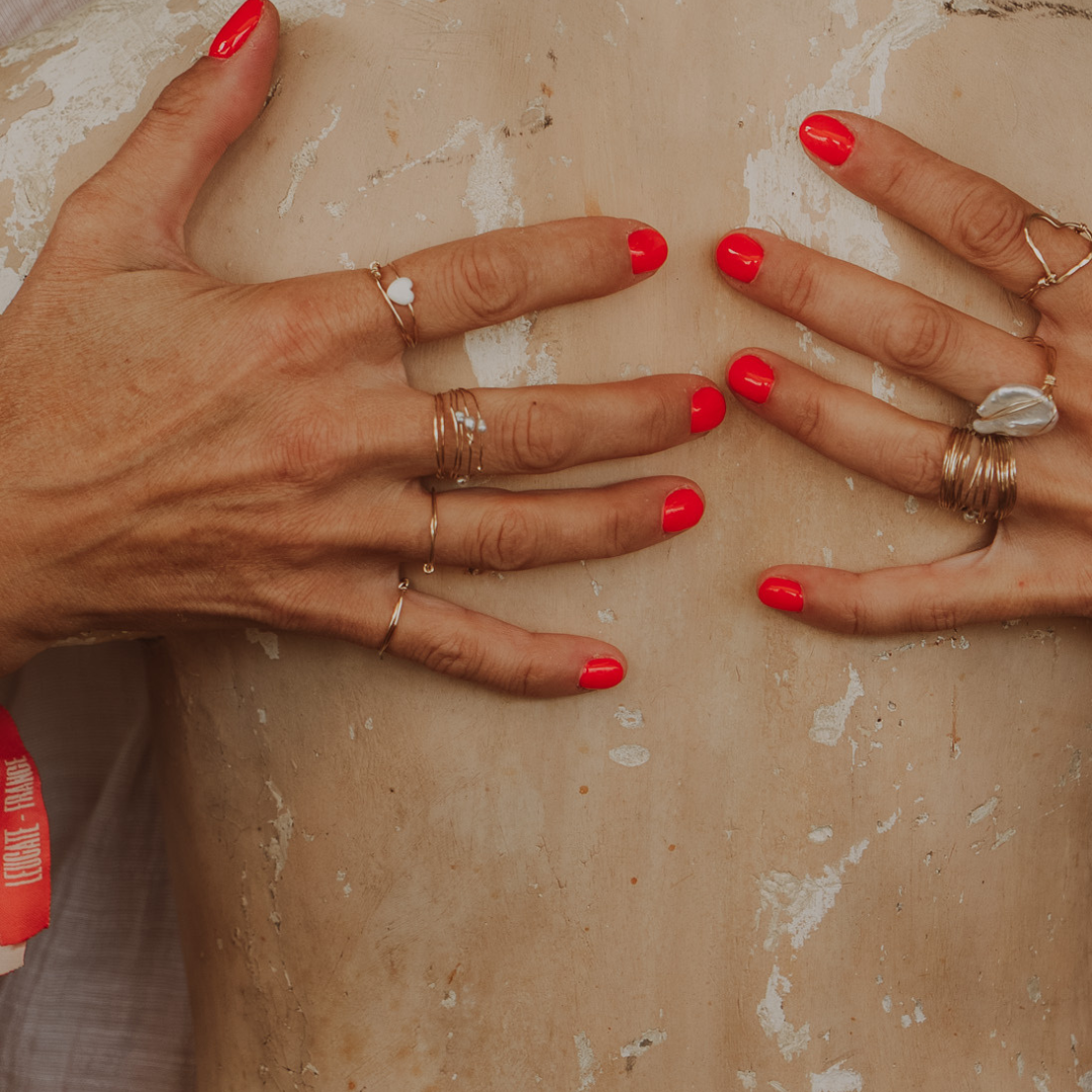 Fil délicat et souple, façonné à la main pour épouser la courbe du doigt.