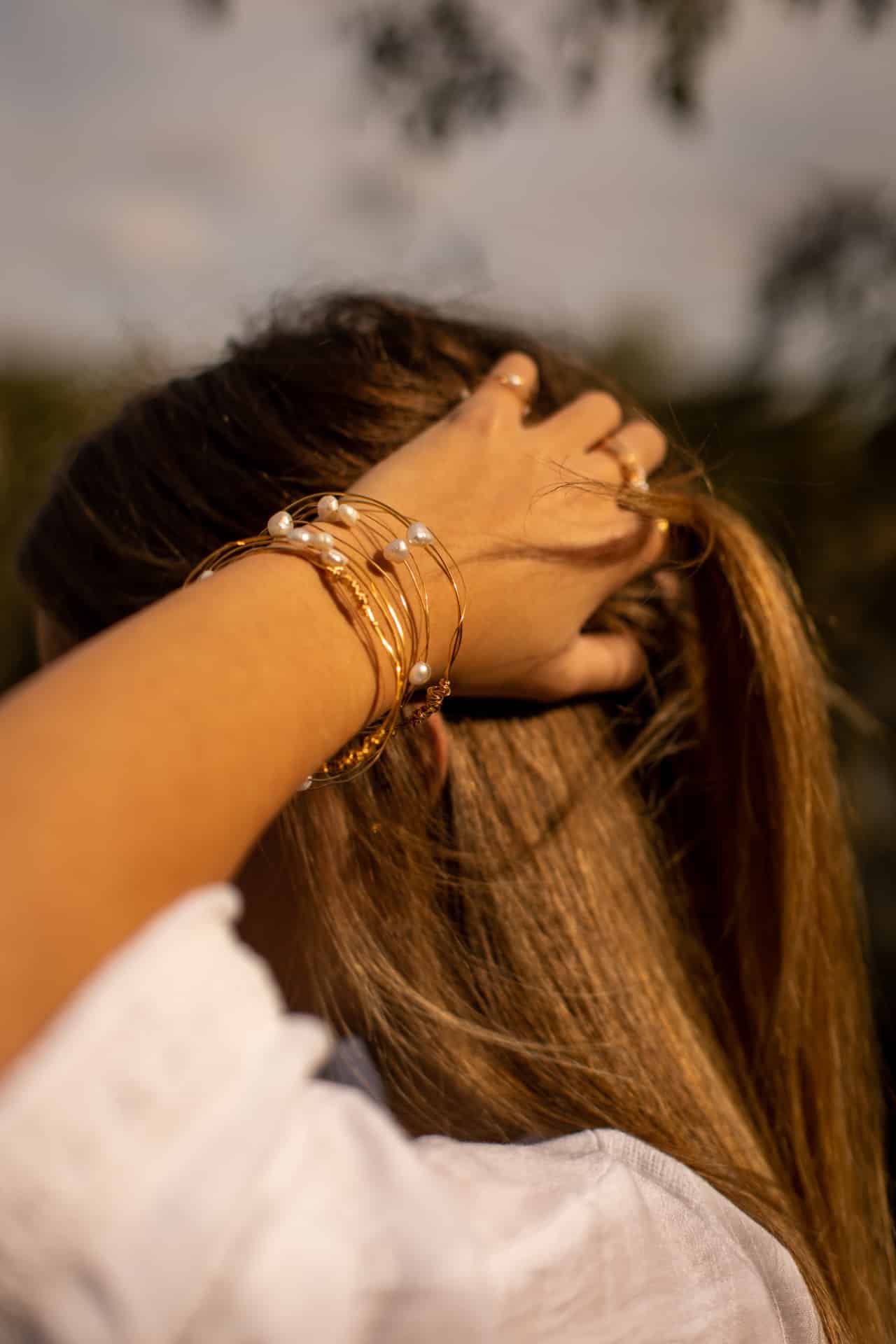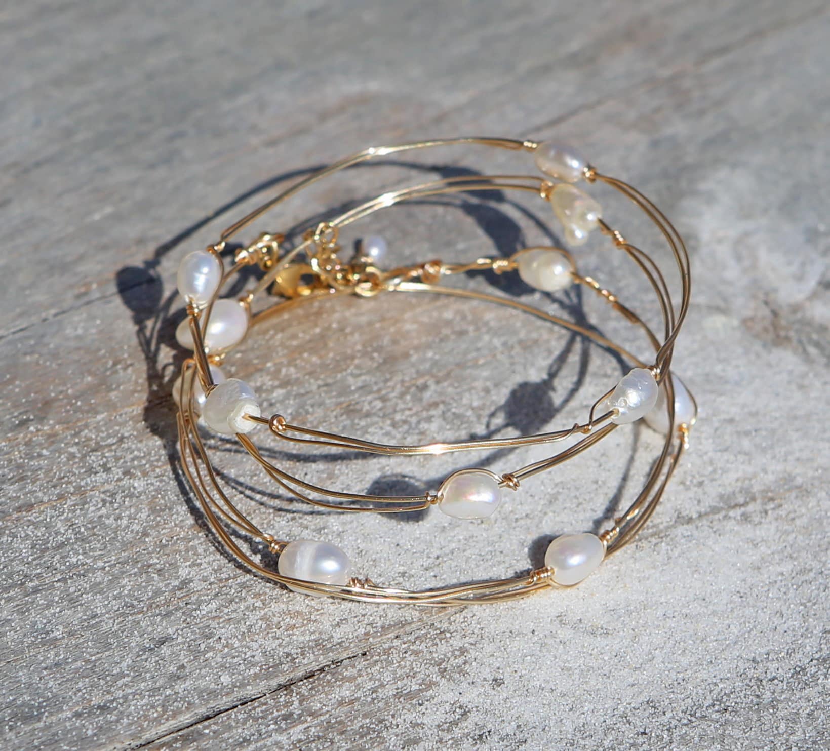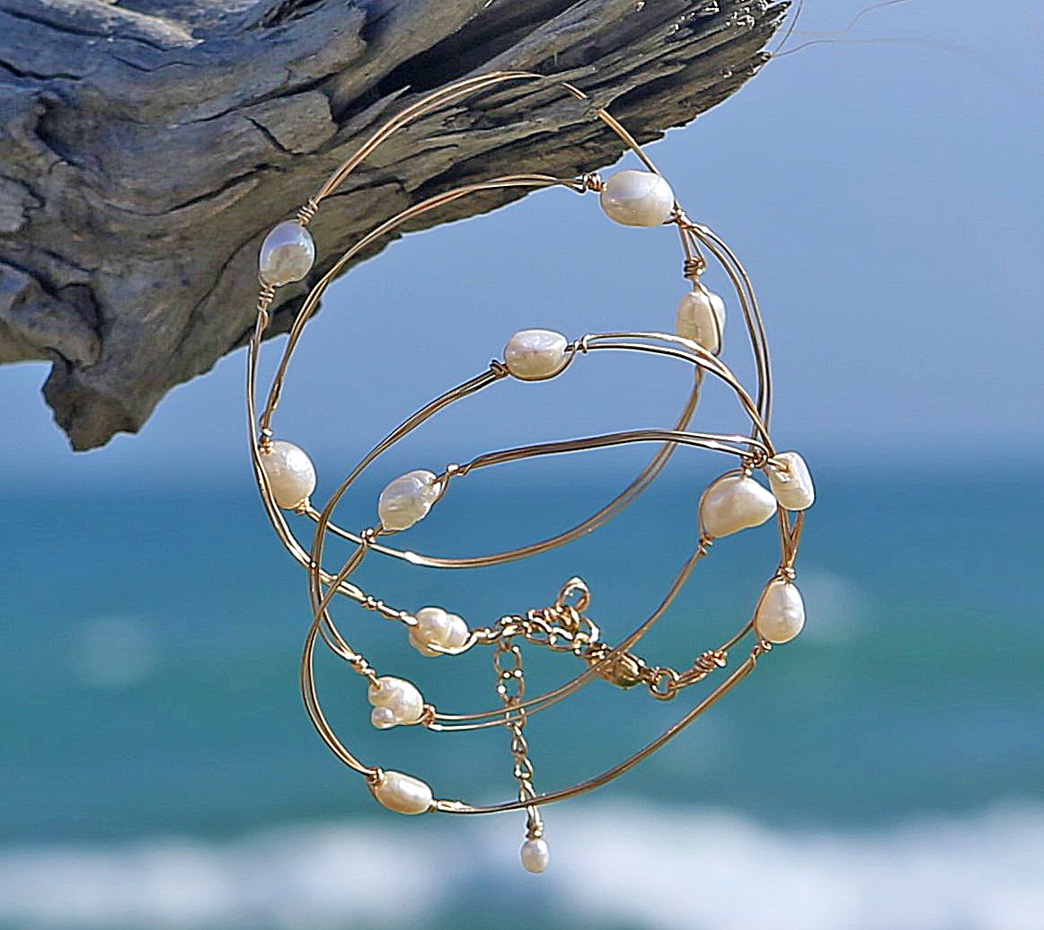 Composition : Fil plaqué or et perles d’eau douce baroque