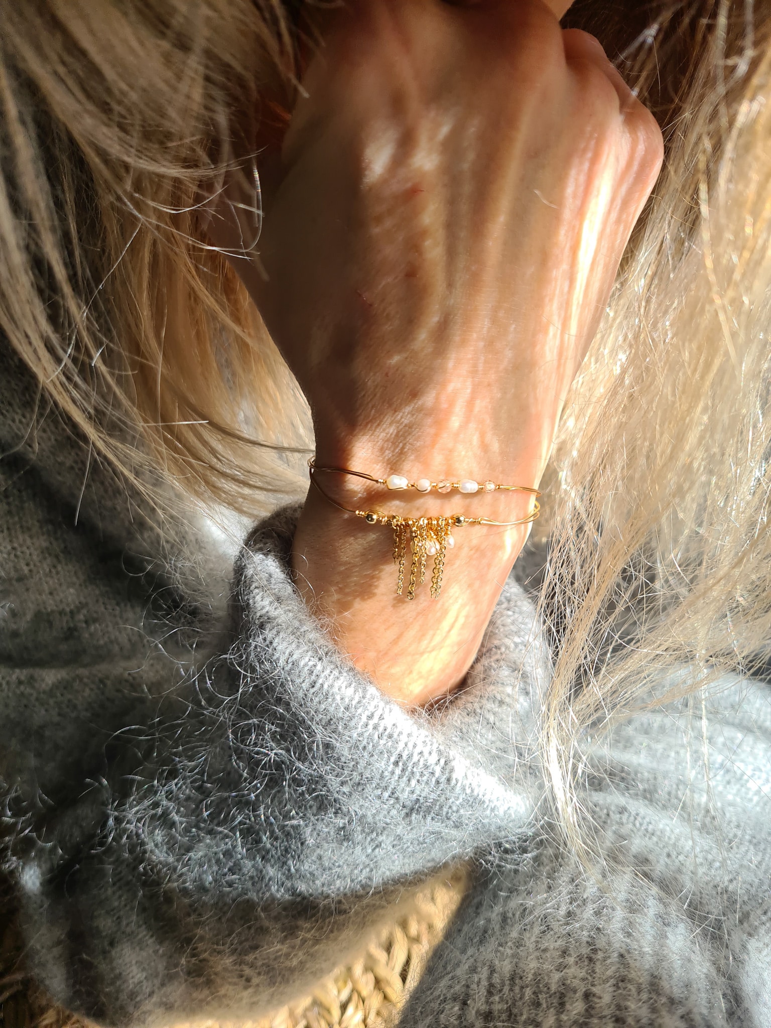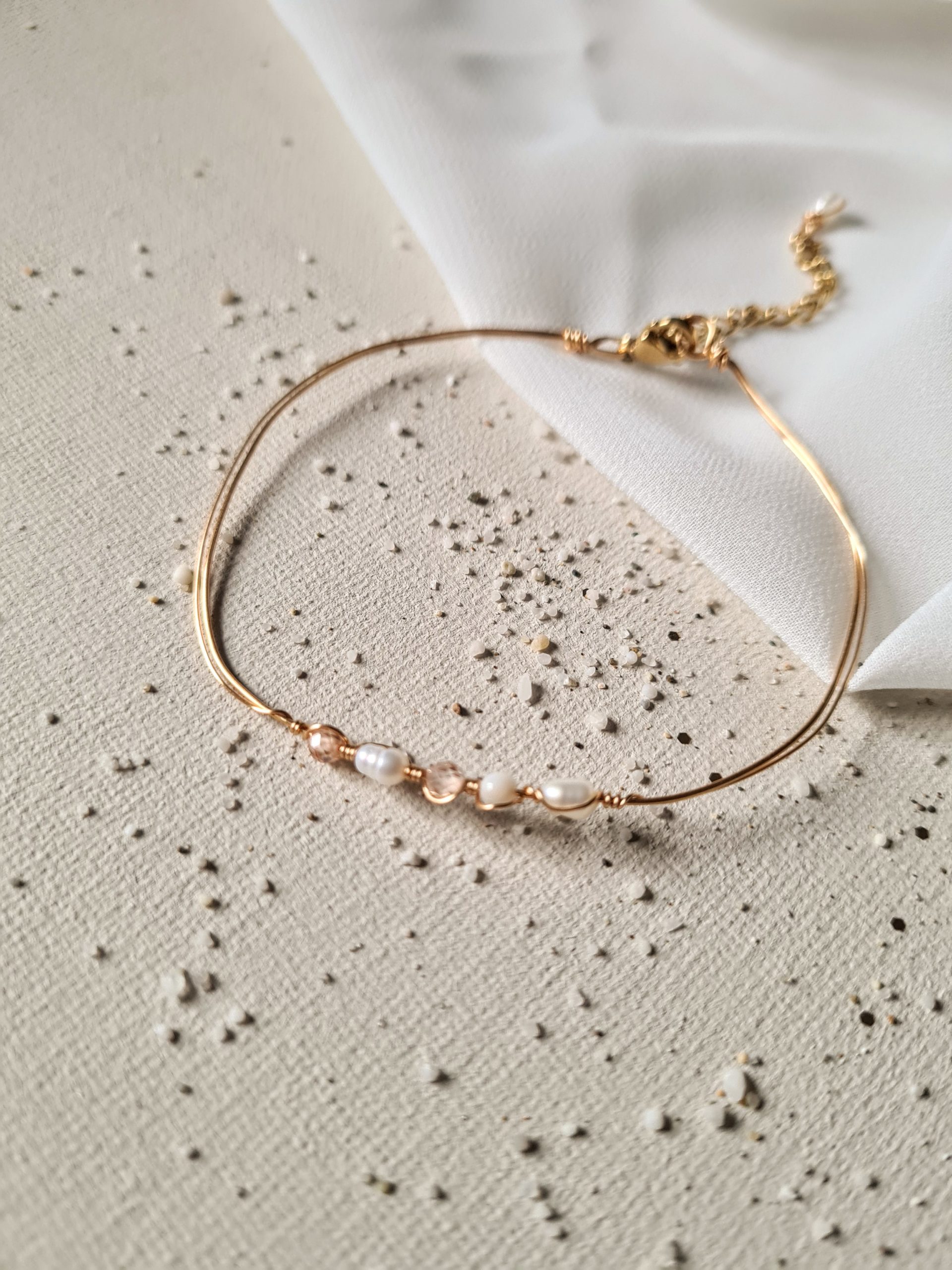Composition : Fil plaqué or, perles naturelles, chaîne de rallonge