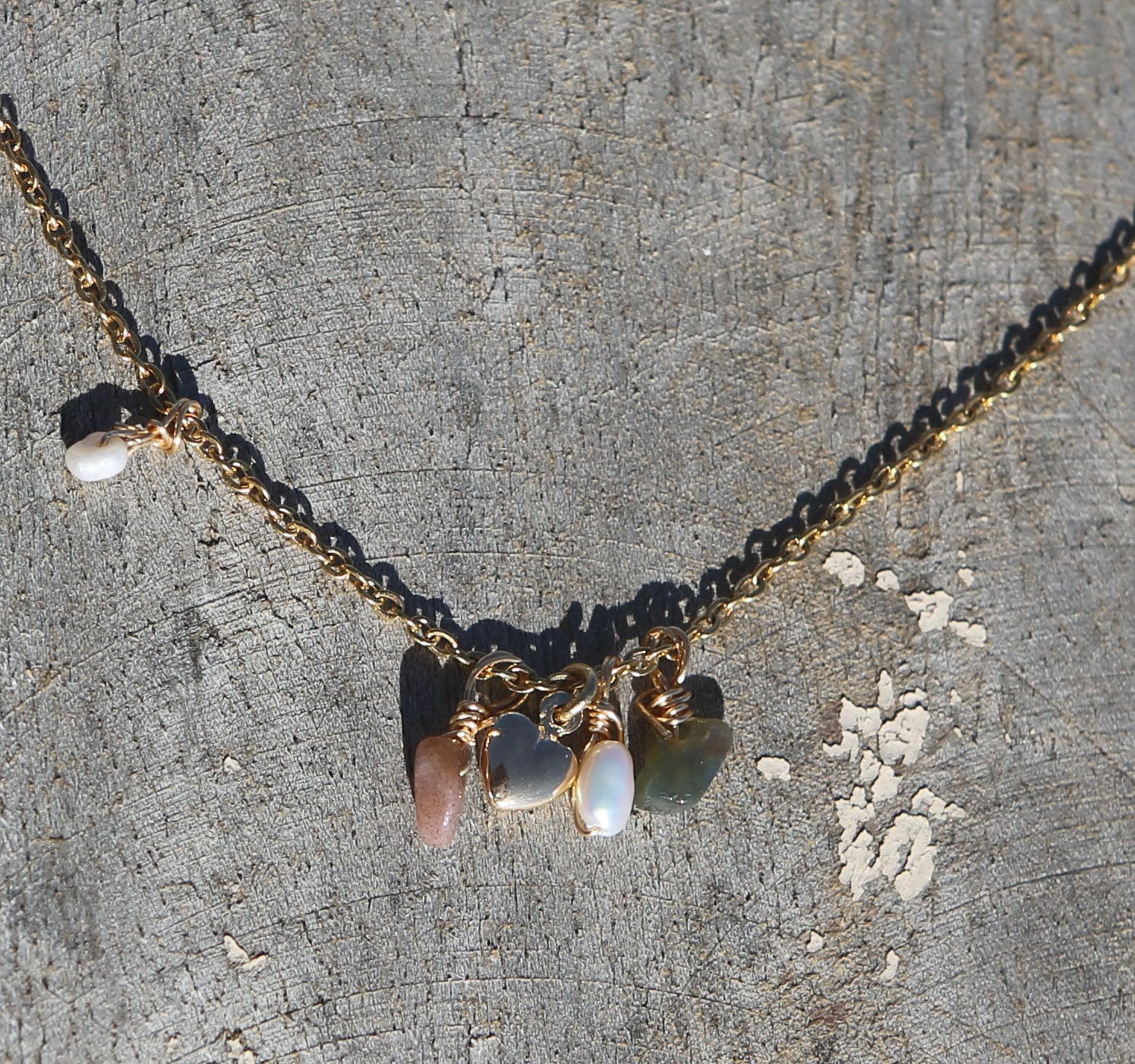 Un collier remplie de pépites de breloques et de souvenirs Nacre, plaqué or, coquillages ,…